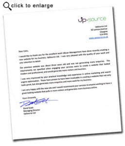 We recently built a new website for Upsource Ltd, an IT services and support company based in Glasgow.  Managing Director David Scott is very happy with the results and we’re looking forward to further developing his company’s online presence.
